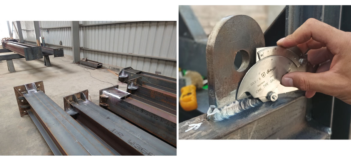 Inspección de calidad de soldadura durante etapa de fabricación de nave industrial.